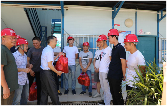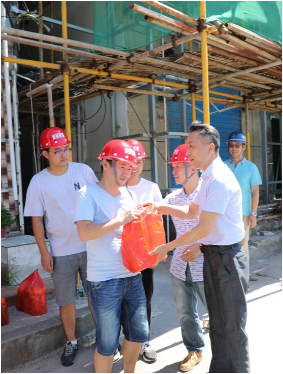 送清涼,亦送溫暖,漆書(shū)記一行代表集團工會(huì )為項目辦工作人員送去了組織的關(guān)懷。 每到一處,慰問(wèn)小組都會(huì )仔細詢(xún)問(wèn)工程的建設進(jìn)展情況、項目的防暑降溫工作落實(shí)情況和高溫期間的工作安排。漆書(shū)記在現場(chǎng)叮囑大家要針對高溫天氣,精心組織,科學(xué)施工,合理安排,做好防暑降溫和安全生產(chǎn)工作,切實(shí)保障項目辦工作人員的安全健康。